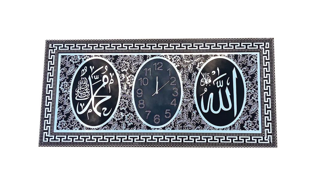 GELAREH Islamic Wall Clock Allah (swt) & Muhammed (saw) -Size:113x43cm